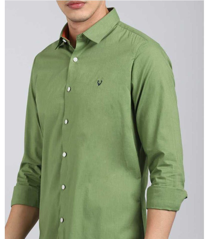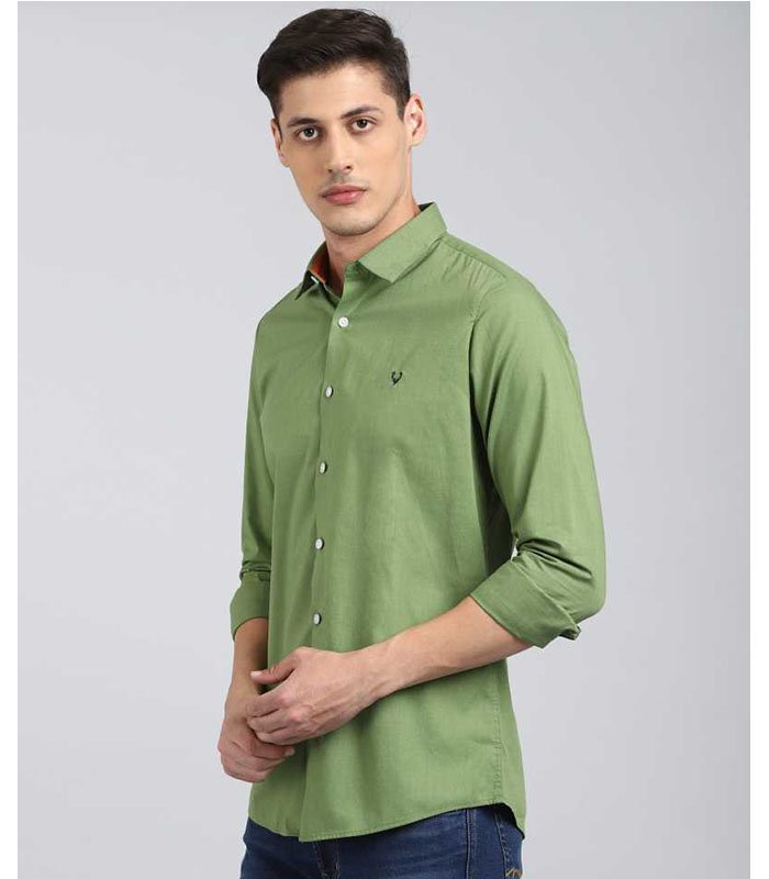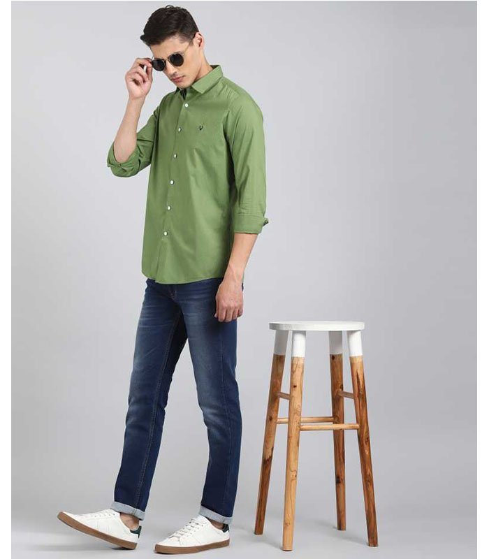 Men Slim Fit Solid Cut Away Collar Casual Shirt