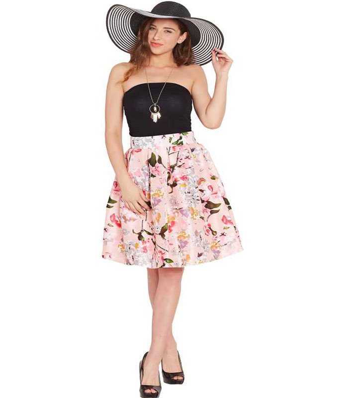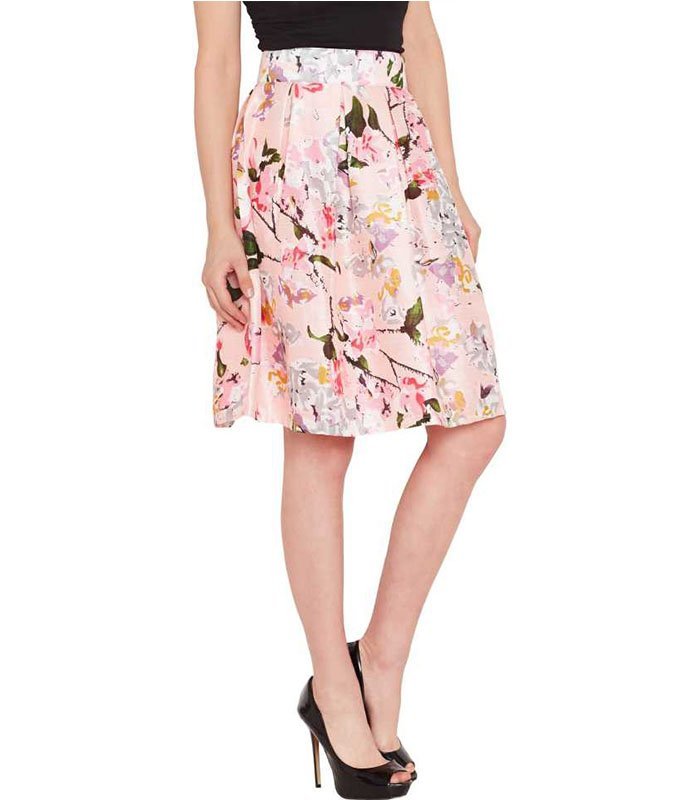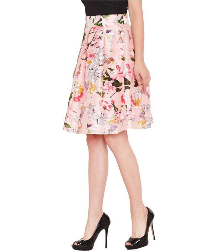 Sassfrass Women Floral Print Pleated Pink Skirt